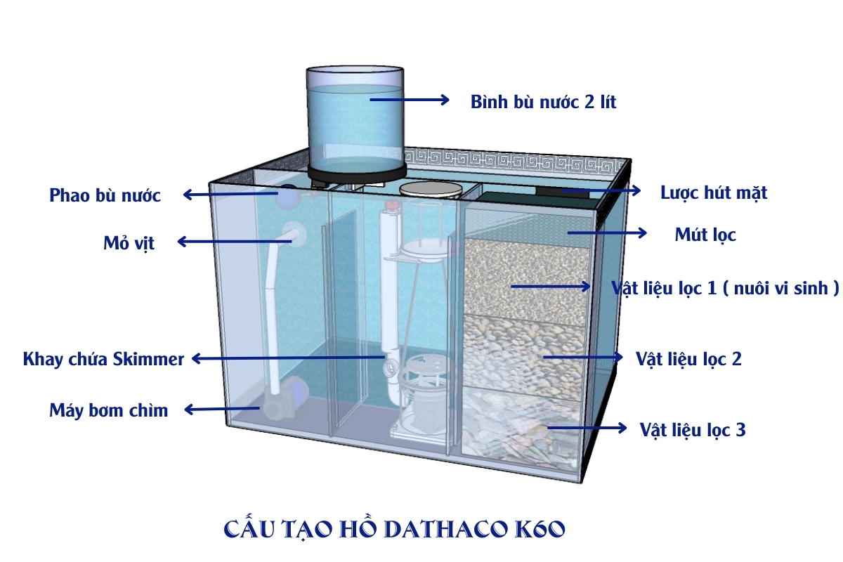 Hệ thống lọc phải có công suất phù hợp với thể tích hồ.