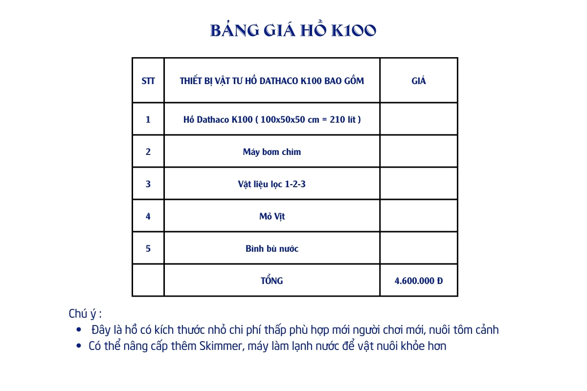 Đánh giá Hồ Cá Cảnh Dathaco K100 Lọc Vách