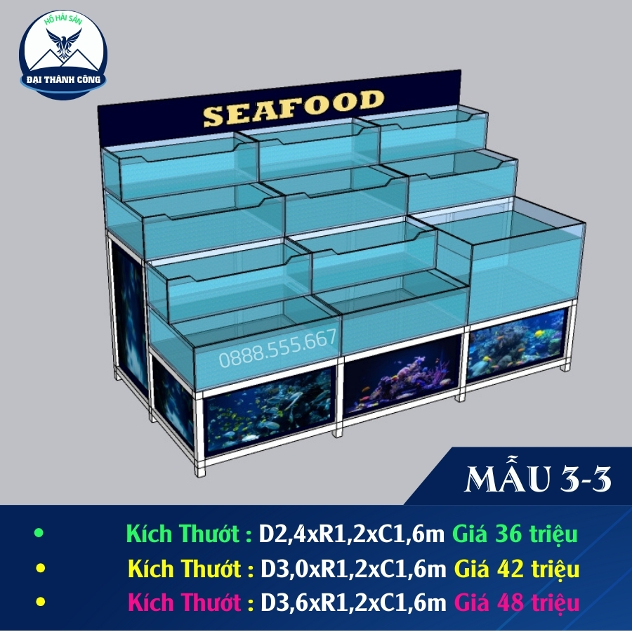 - Ưu điểm: Tiết kiệm diện tích, trưng bày được nhiều loại hải sản khác nhau.