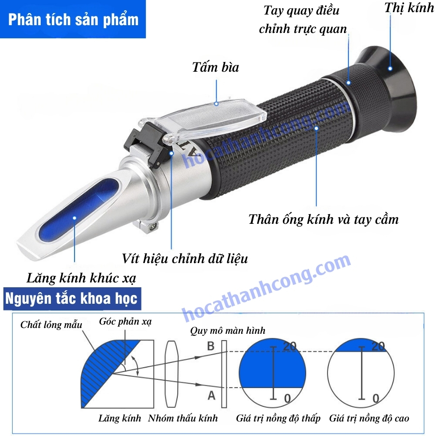 – Nhìn qua thị kính của khúc xạ kế và điều chỉnh núm xoay